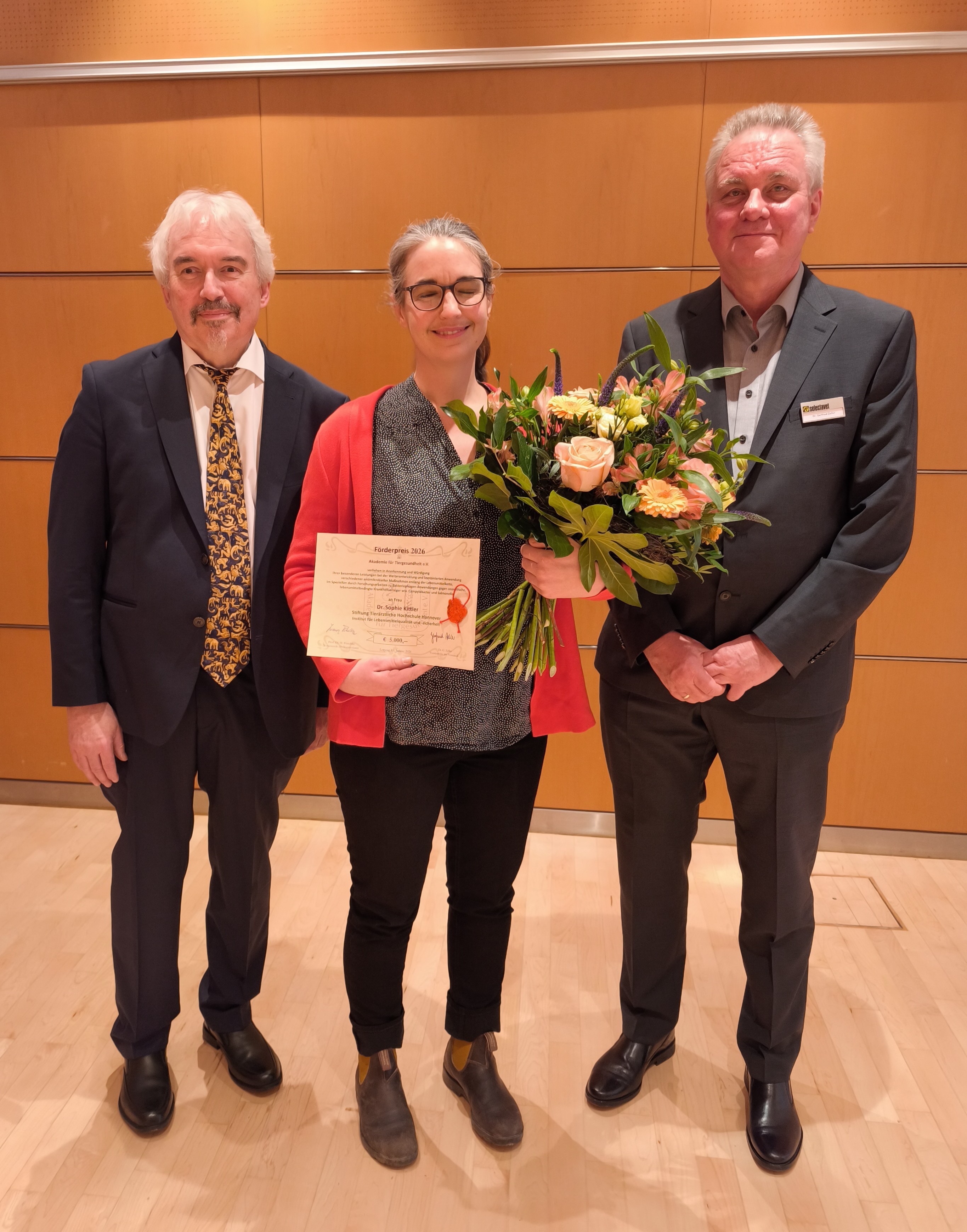 19.01.2026 - Anlässlich des Leipziger Tierärztetages wurde Frau Dr. Sophie Kittler, MSc, Institut für Lebensmittelqualität und -sicherheit der Stiftung Tierärztliche Hochschule Hannover mit dem Förderpreis der Akademie für Tiergesundheit e.V. (AfT) ausgezeichnet.